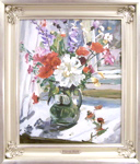 Artist: Nikolay Repin (b.1932) Title: “Flowers on the Windowsill” Media: O/C Size: 23 x 19 in., w/o frame Year of Creation: 2003