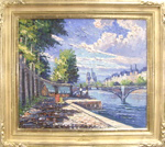 Artist: S. v. Neumann Title: “April in Paris” Media: O/C Size: 25-3/4 x 29-1/2 in., w/o frame Year of Creation: Mid 20th Century