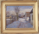Artist: Bertel C. Nielsen (b.1896) Title: “Danish Winter” Media: O/masonite Size: 91⁄2 x 11-13/16 in Year of Creation: 1st half 20th C.